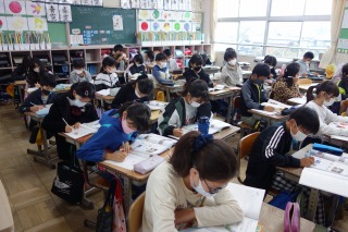 5年1組の理科は、川の学習のまとめをしました。「たしかめよう」の問題に挑戦しました。