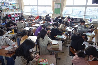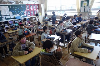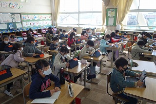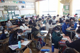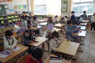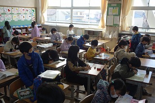 朝の教室では、朝の学習の準備が行われていました。