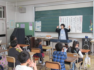 4年1組は音楽の時間でした。滑舌をよくするための早口言葉の練習を行っていました。学年も上がりリズムも難しい早口言葉になってきたので、しっかり練習しましょうね。
