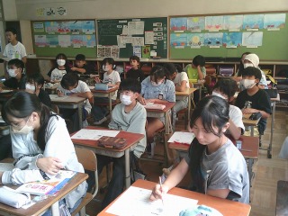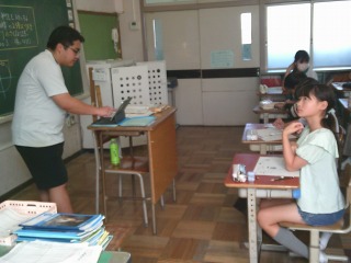 円の4分の1の大きさをどう計算すると面積を求めらるかを考えていました。いろんな意見が出て、活発な授業でした。