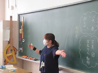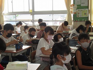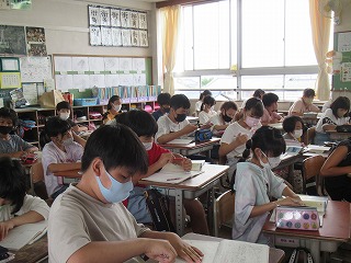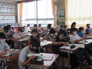 6年2組では、国語の授業が行われていました。紀行文について、先生が説明をしているところでした。