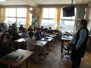 挨拶をし、天気や気分をALTの先生とやり取りしているところでした。