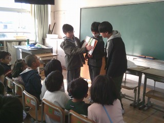 今日の異学年交流は、図書委員による読み聞かせでした。今日は各学年の1組で行いました。図書委員の皆さんの一生懸命さが伝わり、聞き手の子どもたちは身を乗り出すように聞いていました。