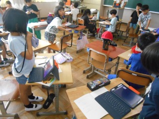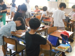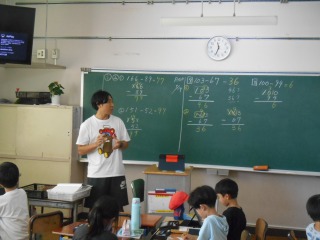 「3けたー2けた」のひき算を、ひっ算で解いていました。タブレットで解き方を共有しながら、どんな解き方がいいのか考える授業でした。