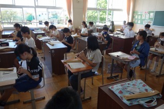 6年1組の音楽はリコーダーの練習でした。半音の音符のある曲を練習しました。