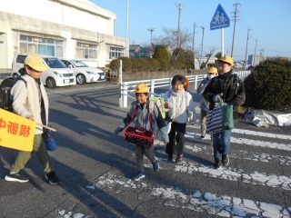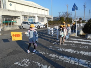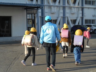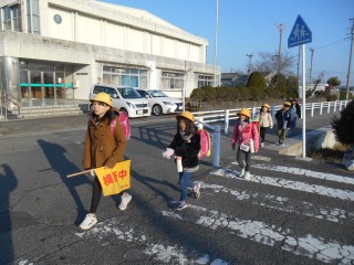 暖かい日になりました。高学年が下の子の様子を見ながら登校してきました。
