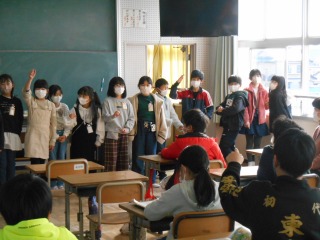 6年生を送る会に向けて、1組が歌い、2組が聞いているところでした。これからの練習に、生かせるといいと思います。