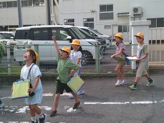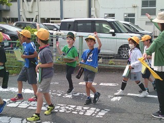 今日は北方面へ出かけました。保護者ボランティア4名の方に引率を手伝っていただきながら、元気よく出発していきました。