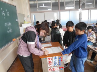 返却されたテストの直しをしていました。終わった人から、先生による確認です。