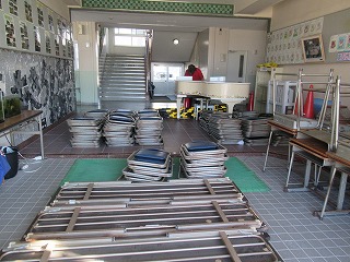 ミワリンピックに向けて、机やいすの準備が着々と行われています。