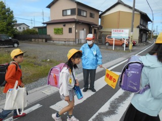 見守り隊の方、保護者の方に見守られながら安全に登校してきました。