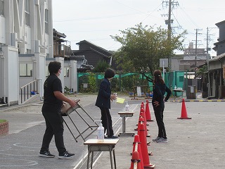 器具や机の準備など、先生方が力を合わせ、行ってくれています。