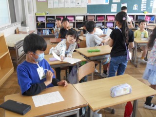 活動が終わり、使用したワークシートを提出するところでした。ワークシートを見たところ、しっかりと振り返りをしたようです。