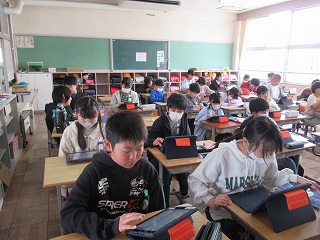 5年2組は総合の時間でした。自分の名前を使って、あいうえお作文の要領で事項紹介を考えていました。名前が長い児童は、大変そうでしたが素敵な自己紹介は完成したかな?