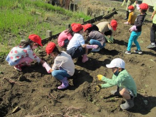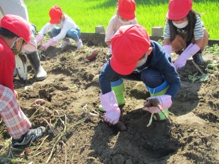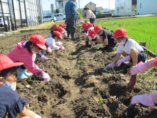 1年生も、いも掘り体験活動を行いました。農業委員の皆様のご協力によって、学校外の畑で活動することができます。ありがとうございます。しっかりと育ったいもをたくさん掘ることができました。 保護者の皆様、長ぐつや軍手、服の用意をしていただき、ありがとうございました。