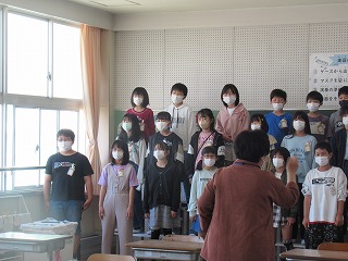 5年1組では、音楽の時間、合唱台にのぼり、ビリーブを歌っていました。とても美しい歌声を披露してくれました。