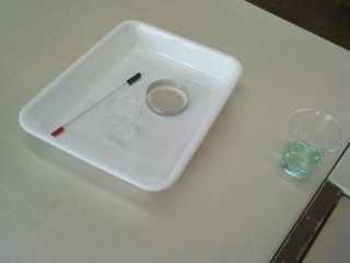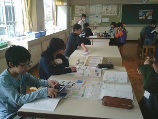 水溶液の学習をしていました。ミョウバンを水に混ぜると、重さは変わるのか、実験をしました。実験器具を片付け、終わったグループから考察をノートに書いていました。