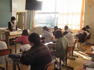 5年1組は音楽の時間でした。教科書の曲を聴きながら、きれいな声を出す練習をしていました。