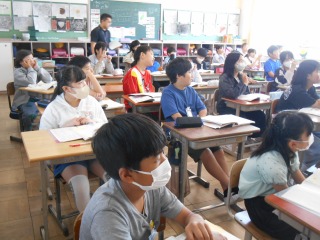 教育実習生と担任の先生による授業でした。インタビューの仕方やまとめ方について学習をしていました。