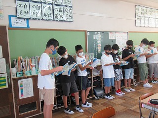 6年1組では、グループに分かれ、音読の練習をしていました。長文で難しい語句も出てきますが、しっかり音読できるといいですね。