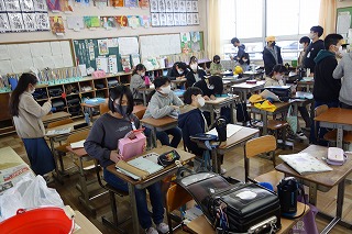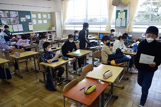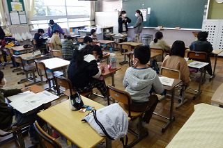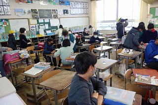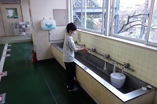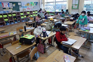朝の教室では、みなさんが一日の仕度をしていました。教室に入るときの手洗いと消毒もしっかりとしていましたね。