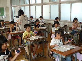 歌をうたうグループとカスタネットでリズムをとるグループに分かれて取り組みました。