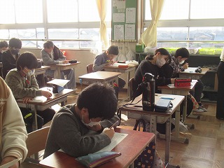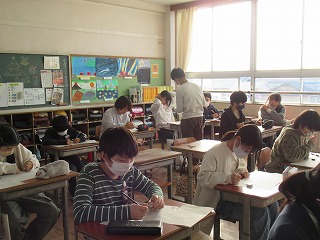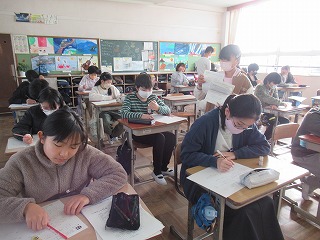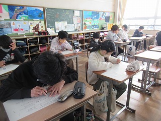 6年1組では、算数の授業が行われていました。プリントで練習問題に挑戦していました。