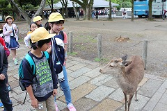 奈良公園 「鹿さん、お手柔らかに」 「大仏の大きさにびっくりした」