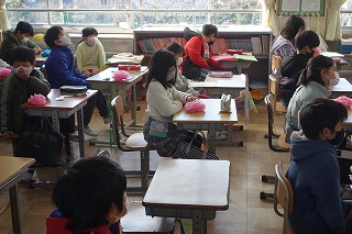 3年1組の学級活動は、卒業式にむけた花の制作をしました。