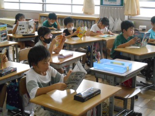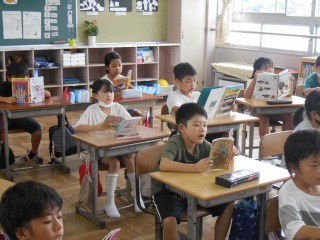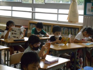 昨日は読み聞かせ。今日は、各自で読みたい本をもって、読書をしていました。