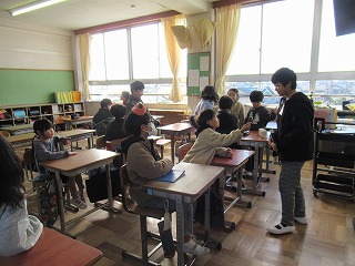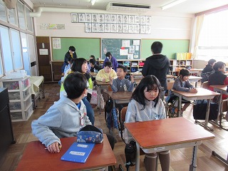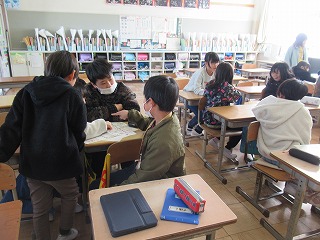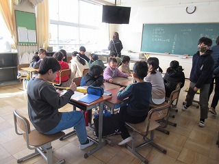 1時間目に、通学班会議が行われました。次年度の班長を決めたり、並び順を決めたりしていました。