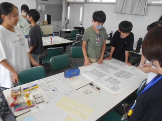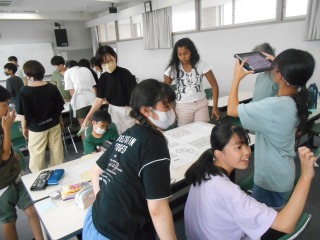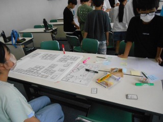 PTAボランティアで防災士の資格を持っていらっしゃる保護者の方を講師とし、HUGという静岡県の開発した避難所運営ゲームを行いました。学校へどんどん避難してくる避難者をどう扱うか、問題山積みの避難所運営にチャレンジしていました。