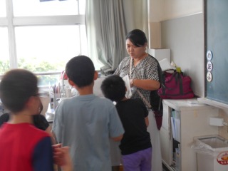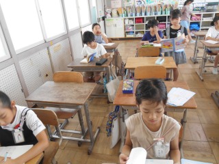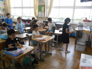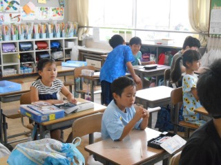 先生に宿題や連絡帳を出しに行く子がいました。準備が終わり、ゆっくりと朝を始める子もいました。
