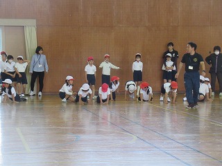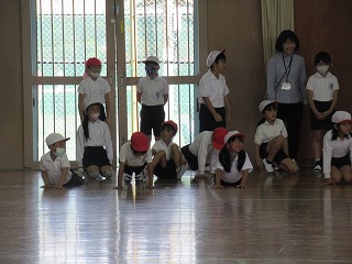 3年生が体育館で合同体育を行っていました。