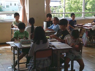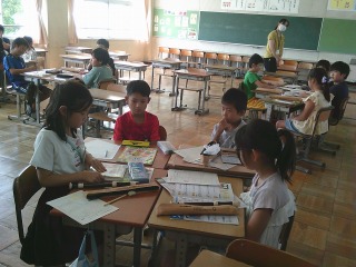 「ヤッホー」をどう歌いたいか、ワークシートに文字やイラストを交えてかいていました。「ヤッホー」が渦を巻いていたり、まっすぐ飛んで行ったりする様子がかかれていました。