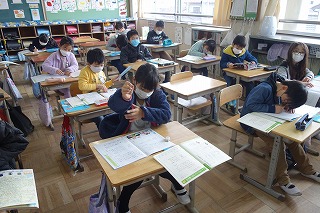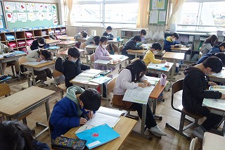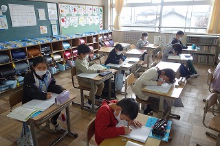 2年2組の書写は、姿勢に気をつけて書写ノートを丁寧に書きました。