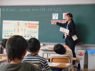 物の数の数え方を学習していました。イラストを手掛かりに、みんなで考えていました。