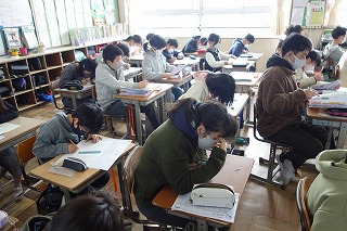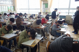 6年1組の算数は、今までの復習テストと復習プリントに取り組みました。