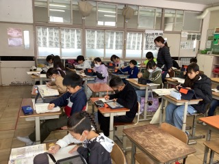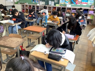 新聞ができる為家庭について学習していました。タブレットも活用し、情報収集していました。