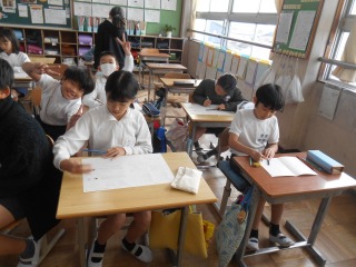 小数のかけ算を学習していました。ひっ算を使い、小数点がどこにつくのか気をつけて取り組んでいました。