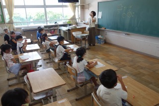1年2組の国語は、「ぼくは」と文章を書くときの「は」と「わ」の違いについての話を聞きました。