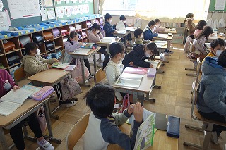 2年1組の国語は、「スーホの白い馬」の学習でした。後半部分の読取をみんなで行いました。
