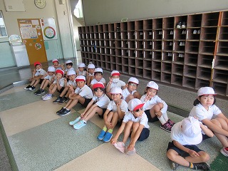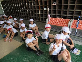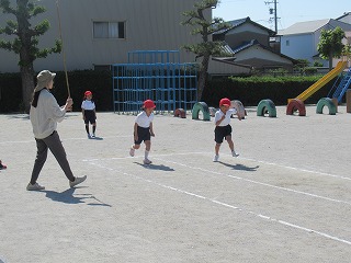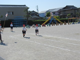 1年生が、50メートル走の記録を測っていました。一生懸命、走っていました。
