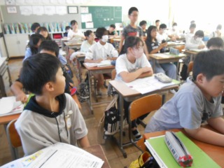 9月から作成するエプロンの材料が届きました。一人一人、確認しながら受け取っていました。