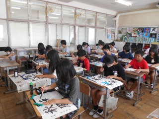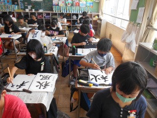 「秋」の右はらい、「風」の右そりに悩みながら練習していました。