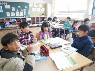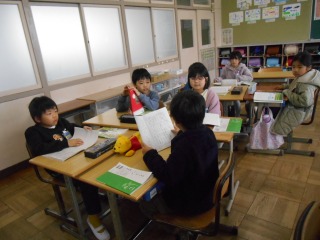 心を動かされた場面を振り返り、班で意見を共有していました。