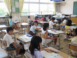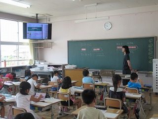 左の数に右の数を加えると、いくつになるのかをタブレットや黒板の視覚資料を参考に考えていました。