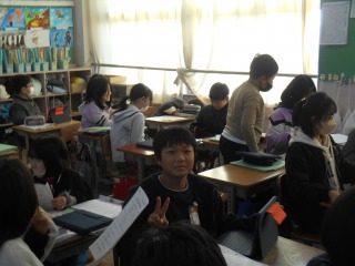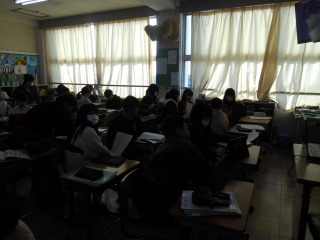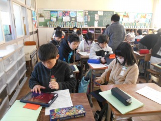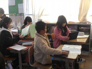 スピーキングテストを行っていました。ペアでのやり取りをタブレットで録画し、提出します。