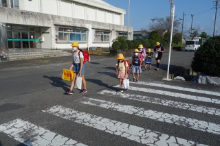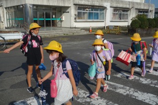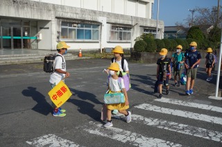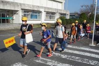 今朝は、秋らしい晴天でした。みなさん、きちんと並んで登校していましたね。