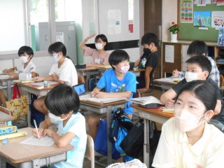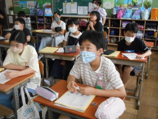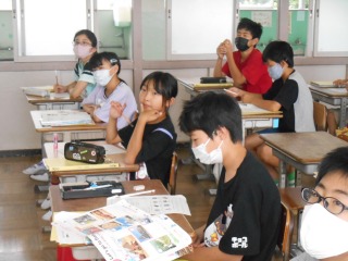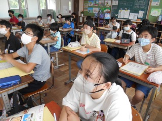 モニタを見ながら、インドの名産物を聞き取り、ワークシートに書いていました。